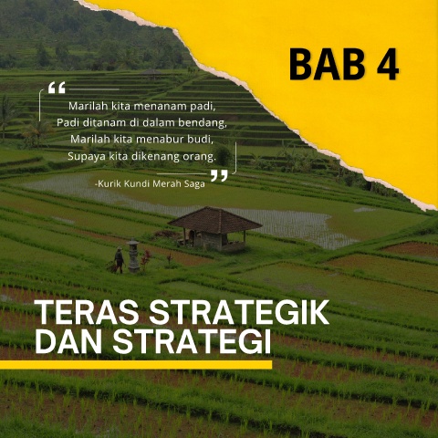 Marilah kita menanam padi, Padi ditanam di dalam bendang, Marilah kita menabur budi, Supaya kita dikenang orang. -Kurik Kundi Merah Saga TERAS STRATEGIK DAN STRATEGI