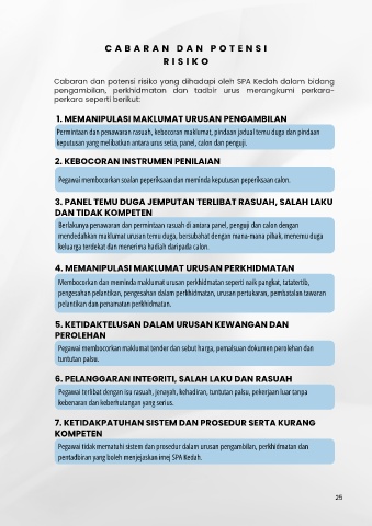 Cabaran dan potensi risiko yang dihadapi oleh SPA Kedah dalam bidang